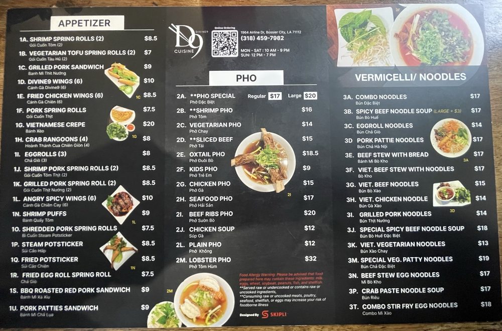 With options for takeout and delivery, Divine9 Cuisine makes enjoying these culinary treasures easy, promising an unforgettable dining experience that embraces the spirit of Vietnam.